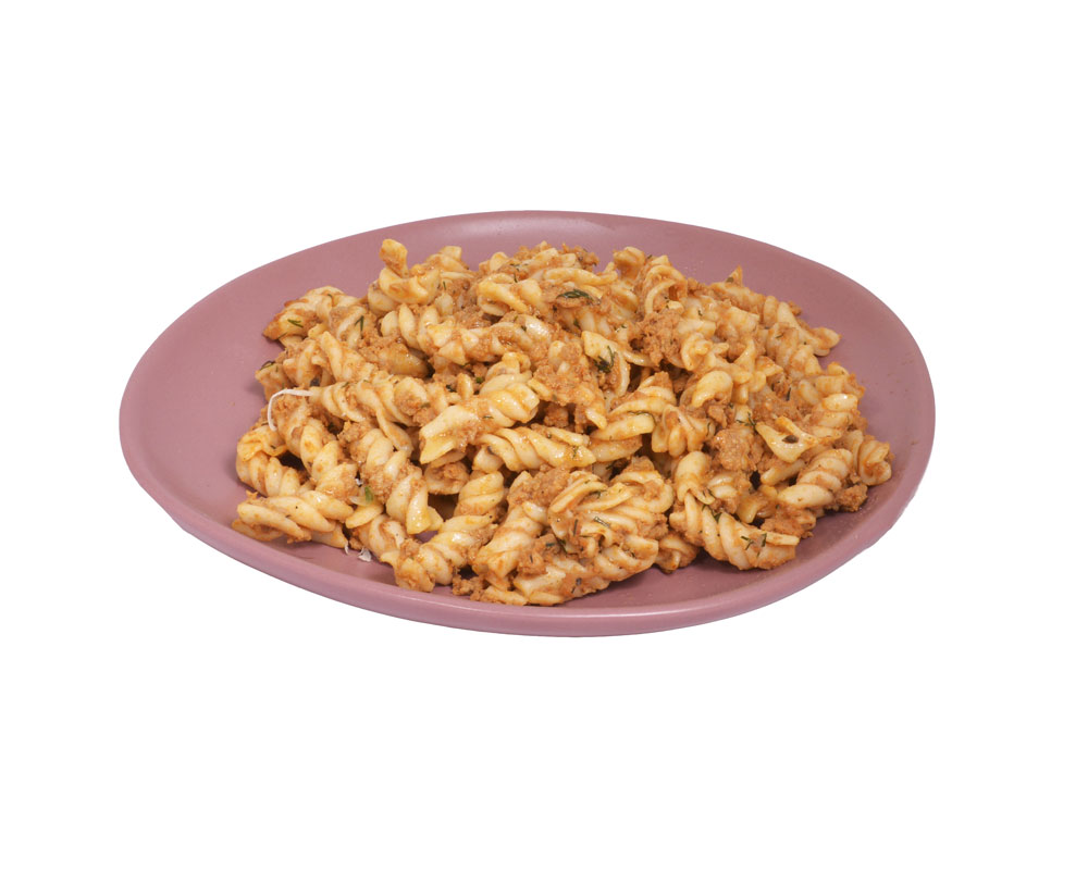 Макаронные изделия из твердых сортов пшеницы, говядина мякоть с/м, свинина мякоть с/м, томатная паста, лук репчатый, масло растительное, укроп зелень, смесь специй «Хмели-сунели», чеснок сушеный, перец черный молотый, соль.